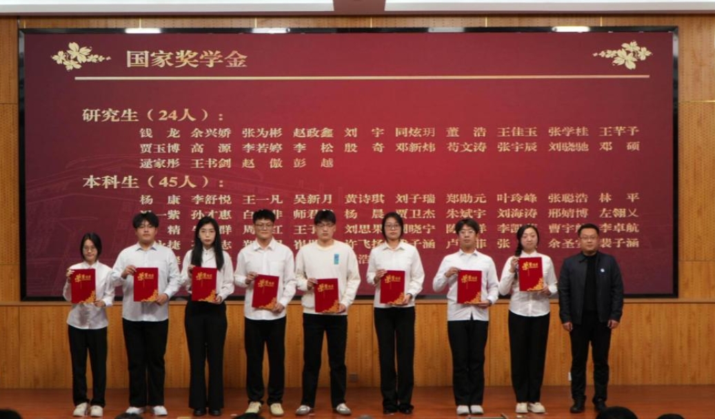 公司副经理范军亮为“国家励志奖学金”获得者代表颁奖