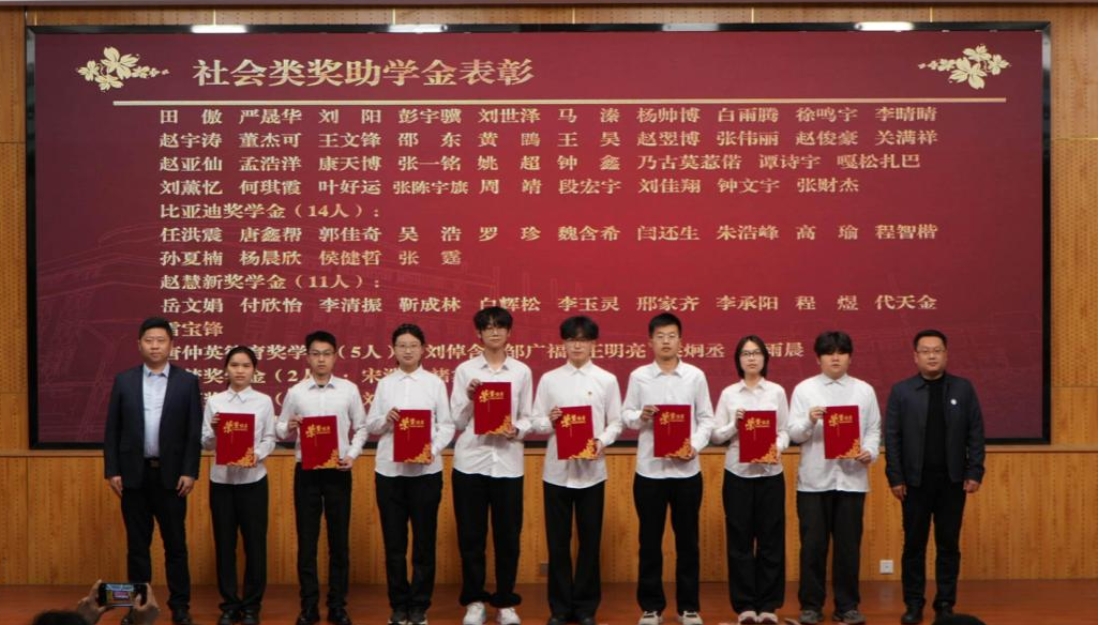 新兴铸管股份有限公司西安分公司总经理助理刘壮先生、公司党委副书记孟庆涛为社会类奖助学金获得者代表颁奖