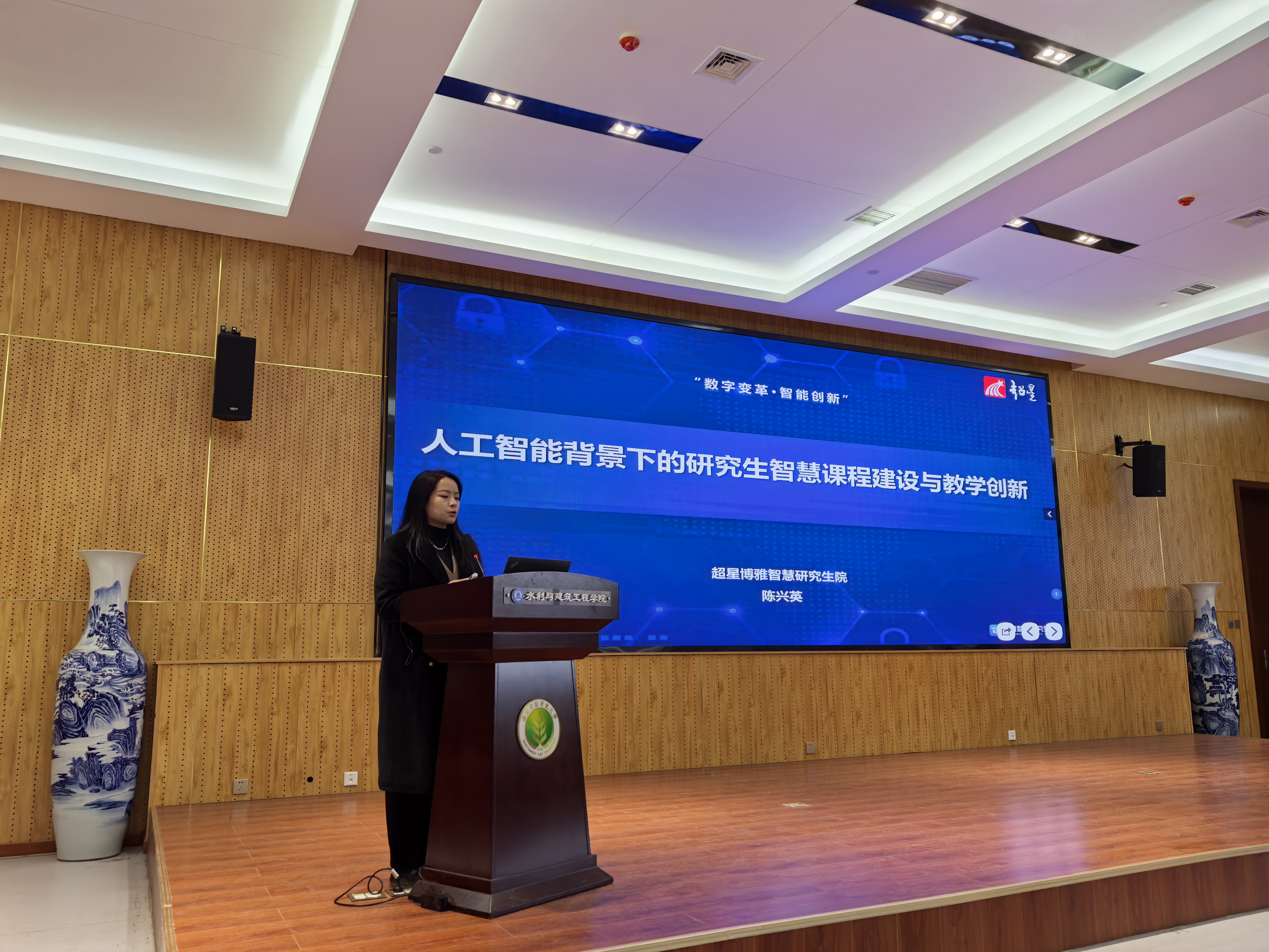 西北工业大学力学与土木建筑公司张娟教授以“教师数字素养提升及数字化和AI课程建设与实践”为题,结合“理论力学”课程的建设实践,介绍数字化背景下的数字化教学资源建设、AI课程建设、多元融合的教学模式、数字化考核评价机制和教学改革成效,为开展AI研究生智慧课程建设提供参考。超星泛雅集团产品总监陈兴英以“人工智能背景下的研究生智慧课程建设与教学创新”为题,阐述了智慧课程的建设背景及意义、新时代智慧课程建设思路和智慧课程案例与成果培育,深入探讨了基于智慧课程的研究生混合教学模式以及教学智能体的建设和应用。